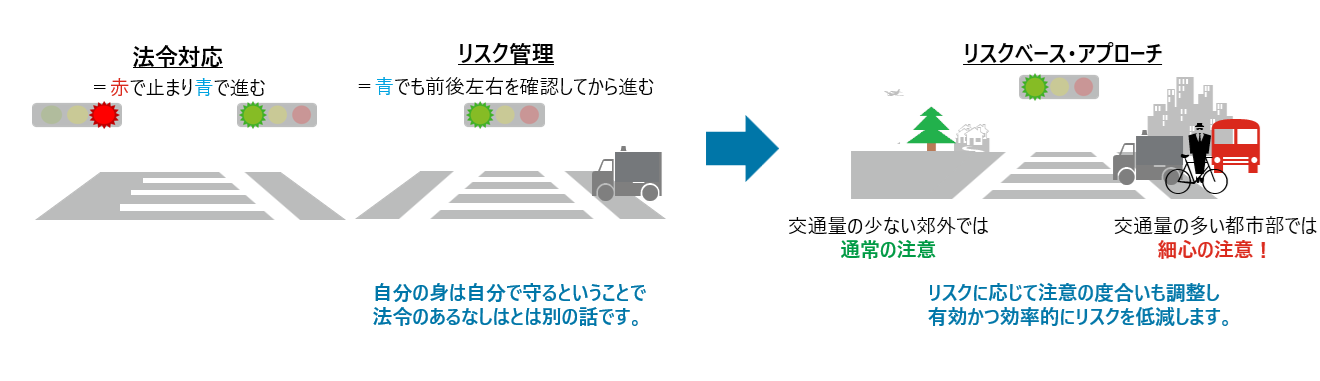 金融コンプライアンスの施策は、金融庁ガイドライン等が繰り返し強調している通り、「リスクベース・アプローチ」を前提としていて、個々の金融機関等が独自の目線でリスクを網羅的かつ客観的に特定・評価し、自社のリスク・プロファイルに見合ったリスク低減策を整備することを求めている。すなわち、金融機関等に求められているのは「法令対応」だけでなく「自律的なリスク管理」ということになる。