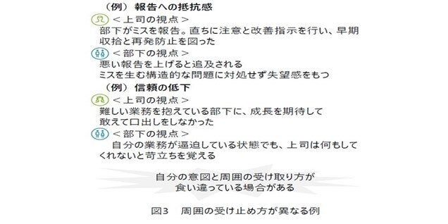 いずれの例も、上司の行動は一見してそれほど問題があるようには見受けられない。しかし、周囲は例えば次のような要因によって全く違う受け止め方をする。