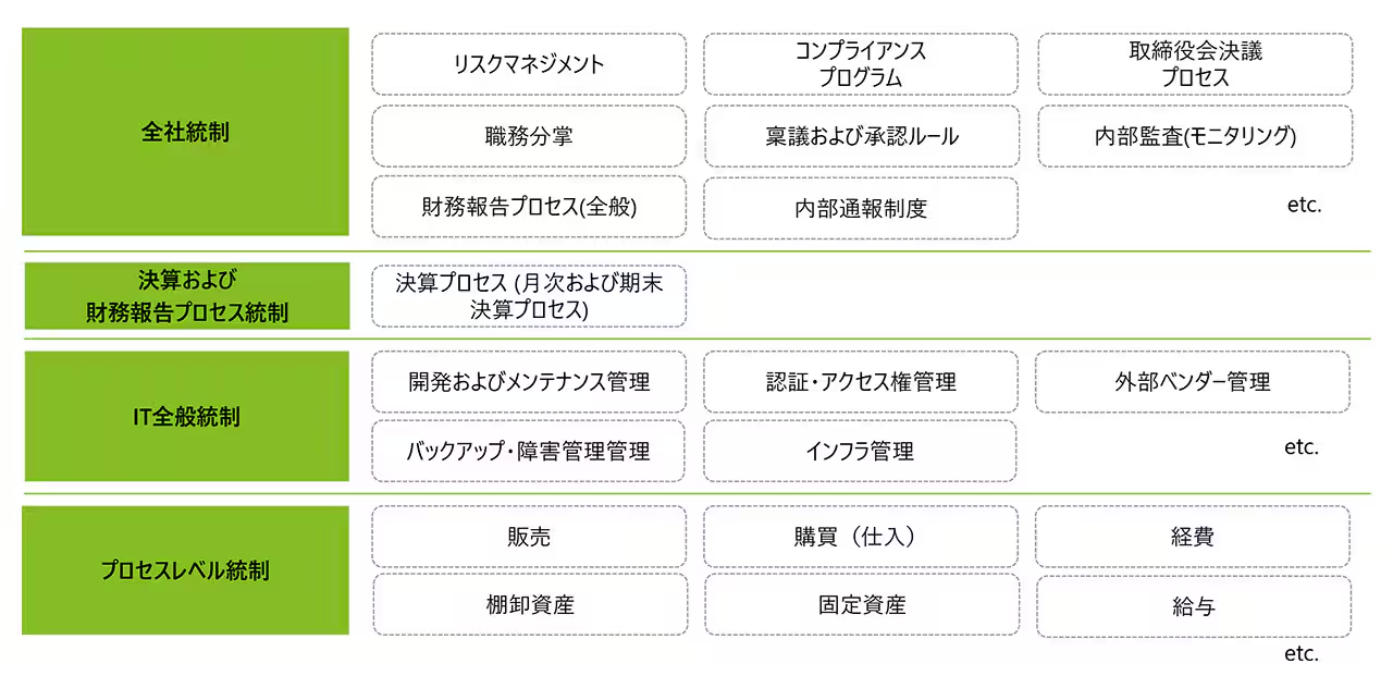 上記のフォレンジックDDが、なんらかの不正が過去にあった場合に実施するDDの例であるならば、次に紹介する内部統制DDは、不正発生の実績の有無にかかわらず、対象会社の不正予防や発覚時のガバナンスを検証し、その買収後の高度化を見据えたDDの例である。内部統制とは、企業の業務の有効性・効率性、財務報告の信頼性、関連法規の遵守を目的とした経営者が設計したプロセスが一般的な定義であり、広範な概念である。フォレンジック専門家が実施するDDでは特に、上場企業における財務報告の信頼性確保のための内部統制報告制度(J-SOX)の枠組みを活用し、不正予防・早期発見の強度を主たる対象として分析する。