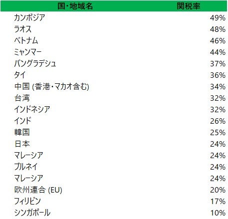 【図表2】 米国による相互関税の国別一覧表(抜粋)
