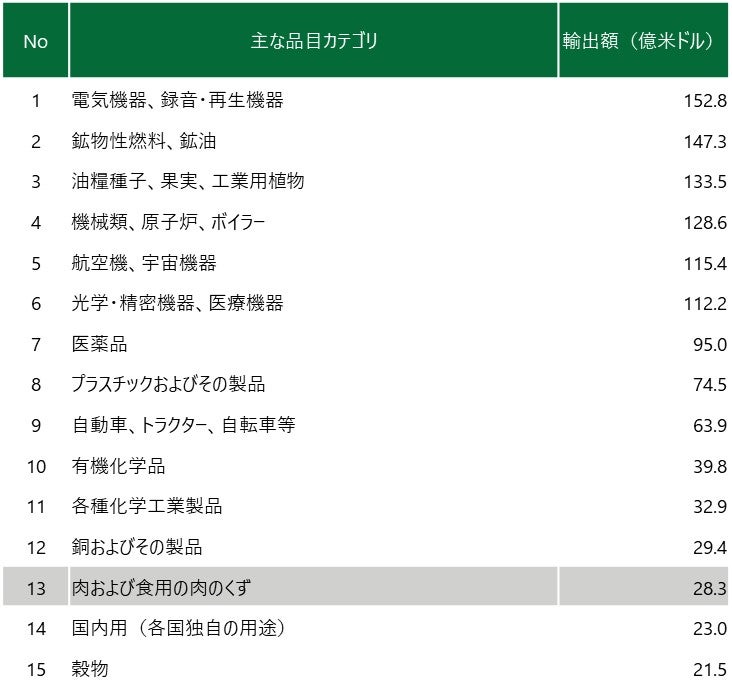 参考:UN Comtrade Database. HSコード2桁の章別品目一覧、2024年の米国から中国への輸出データを検索条件として参照 (https://comtradeplus.un.org/)