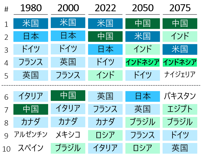 ――2050年には中国、米国、インド、インドネシア、ドイツが世界5大経済国になる見込み