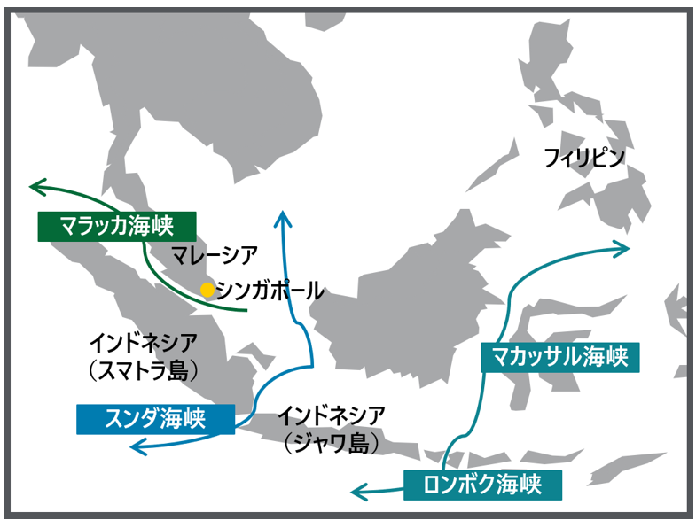 図3 インドネシアが管轄する主要海峡と貿易航路