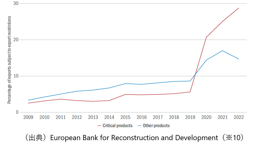 さらに、供給国の政策によって鉱物資源の供給が大きく左右されるという地政学リスクもある。実際、輸出規制対象となった重要鉱物は近年、急激に増加している(※図6)。