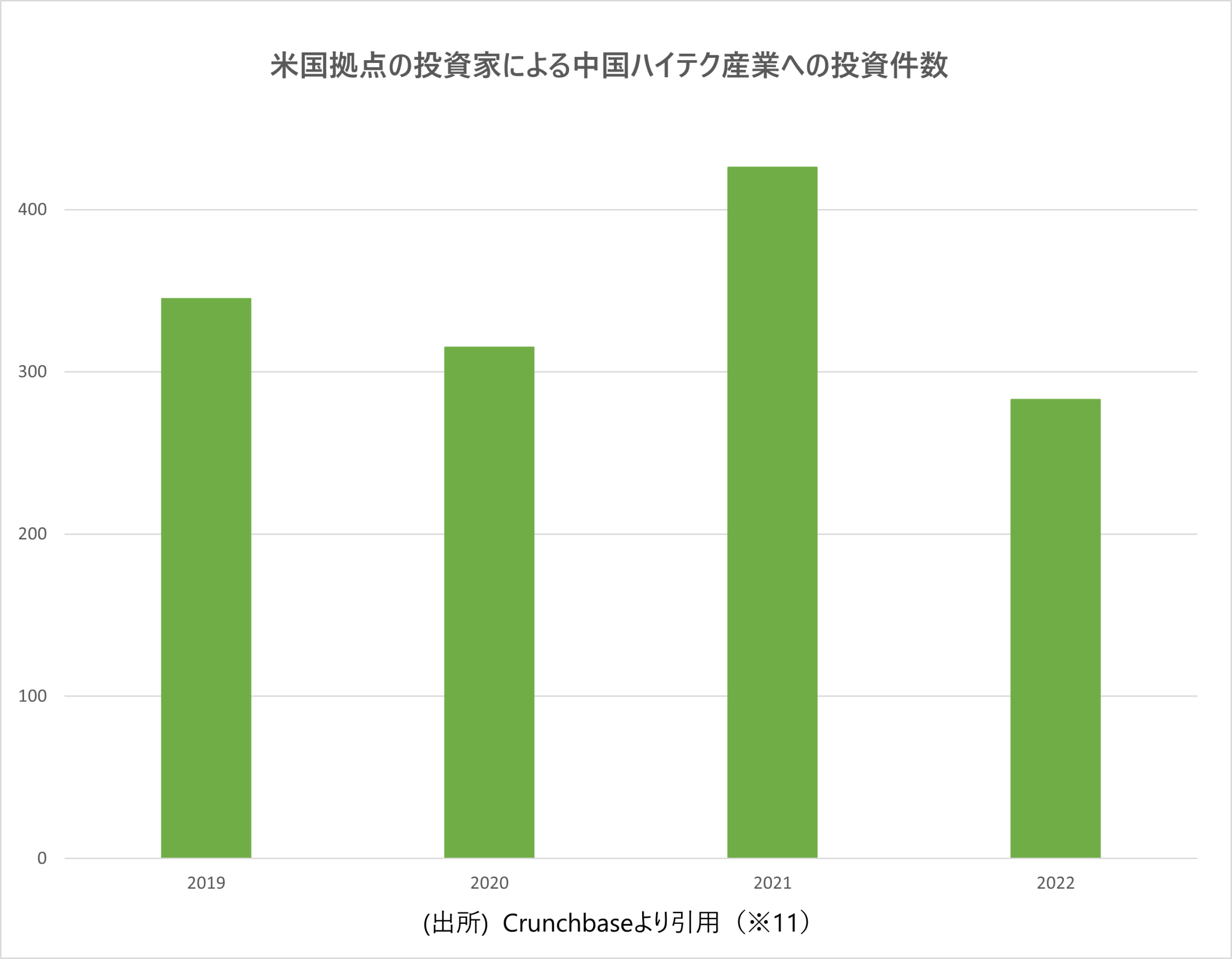 Crunchbaseの調査によると、2023年は、米国の投資家による中国での取引がここ数年で最も少ないペースである。2019年から2021年にかけて、中国のスタートアップ企業への投資件数が426件と増加していたが、地政学リスクが高まったこともあり、昨年の投資件数は283件に減少している。