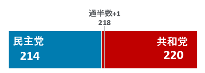[xv] 下院共和党内の権力闘争が激しくなる可能性も注視が必要である。下院は、共和党220対民主党215となる見通しだが、共和党下院議員3名(ウォルツ、ゲイツ、ステファニク)が政権入りするため、補欠選挙の結果が出るまで共和党217対民主党215の構図となる。下院の過半数以上は当面217となり、意思決定をめぐる共和党内の主導権争いが予想される。