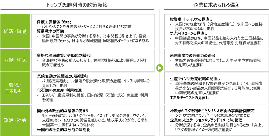 図表1 トランプ氏勝利時の政策転換シナリオ