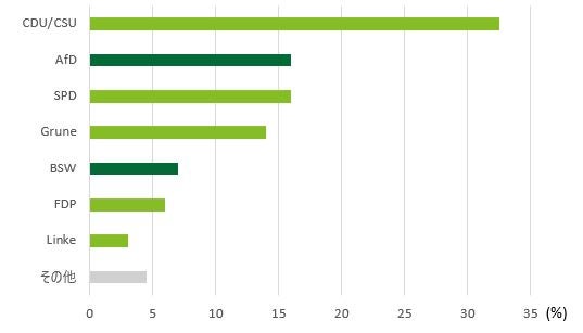 (※5)移民排斥を掲げる極右政党、ドイツのための選択肢(AfD)の支持率が急上昇し、与党である社会民主党(SPD)を抜き2位となった。また、左派ポピュリストであるザーラ・ヴァーゲンクネヒト同盟(BSW)もAfDと同様に難民受入を規制すべきだと主張。AfDのようにEU脱退は掲げていないものの、ウクライナ支援に反対するなどAfDの主張を取り入れた政策を打ち出している。さらに、野党のキリスト教民主同盟(CDU)のメルツ党首も移民を抑制する方針を発表した。移民には、ドイツの文化やドイツ語の習得などを要求するとしている(Sabine Kinkartz, “Friedrich Merz, the CDU and its bid for power”, DW (May 8, 2024)参照)。