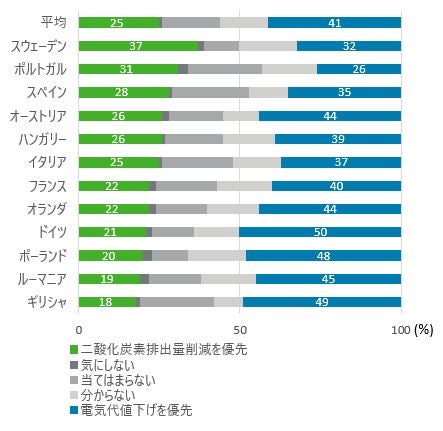 (※12)これまで、社会民主進歩同盟(S&D)やリニュー・ヨーロッパ(RE)と共に欧州の気候変動対策を主導してきた欧州人民党(EPP)は、ここにきて方針を転換しようとしている。EPPのマニュフェストによると、経済成長と気候変動対応の両立を強調し、これ以上の環境規制は不要だとしている。