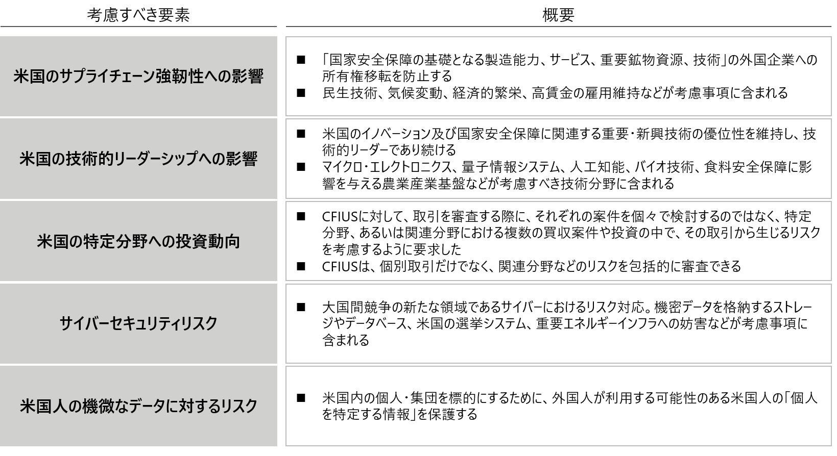 図7 バイデン大統領が定めたCFIUSの審査で考慮すべき要素