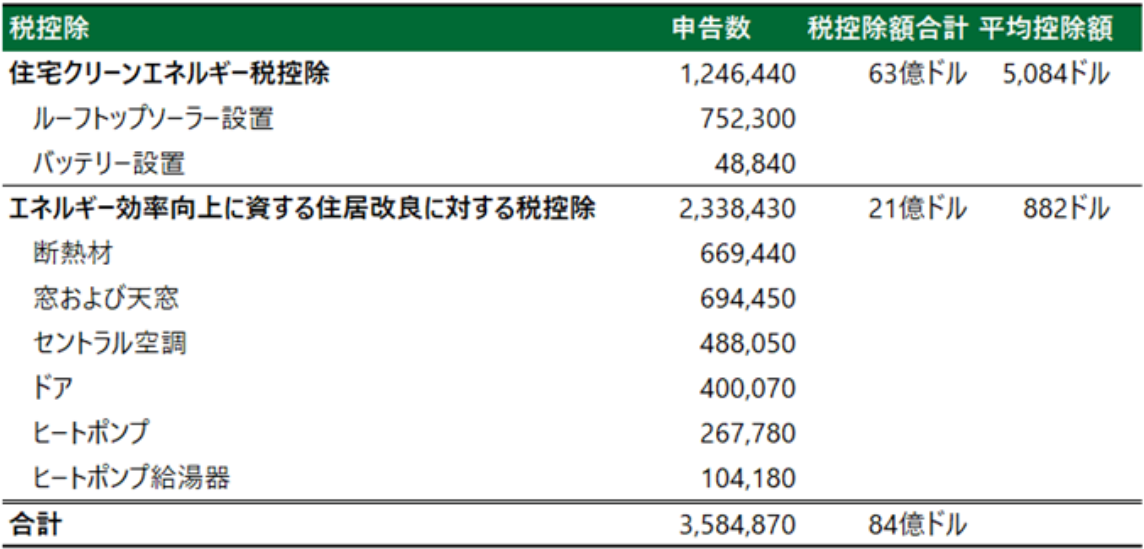 図表3 住宅関連投資に対する税額控除プログラムの利用データ(2023年)