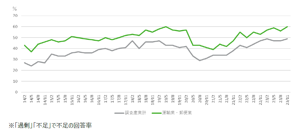 図1 運輸業・郵便業の正社員等労働者過不足状況