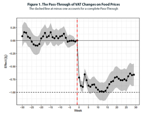 【図表3】 食品の付加価値税減税が店頭価格にいかに反映されたか(ウェブスクレイピングデータによる)