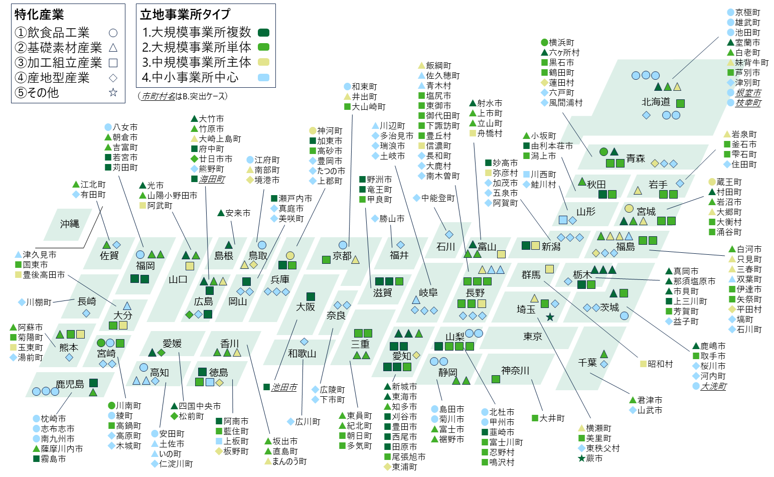 さらに、こうした抽出結果の特徴と全国分布を、図表4と図表5に示した。いずれも2021年(令和3年)のデータに基づいている。