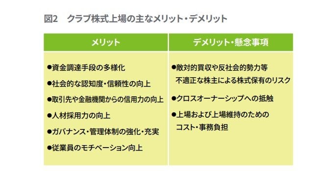 Jリーグが実施したルール変更によって、クラブが株式を上場することが可能となりましたが、クラブが株式を上場することを通じて得られるメリットや抱えるデメリット・懸念事項にはどのようなものがあるでしょうか。主なものについて見てみたいと思います。