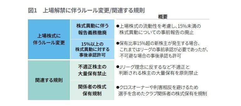 本コラムでは、Jリーグが行った規制緩和の内容と今回の上場解禁によって期待される効果や影響について考察したいと思います。