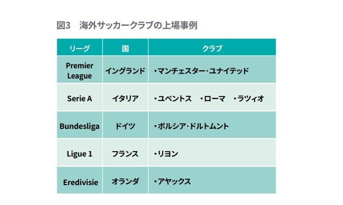 海外と日本のプロスポーツクラブの上場状況