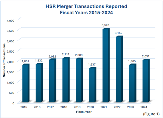 【図1】出典:HSR Annual Report for FY24 (Federal Trade Commission Bureau of Competition, Department of Justice Antitrust Division) 2025年10月28日閲覧