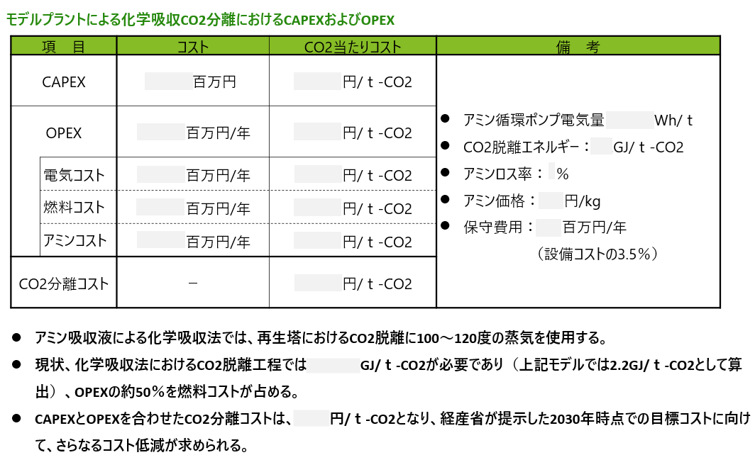 CAPEXおよびOPEXのCO2分離総コストは、いまだ低減が実現していない実態がある。