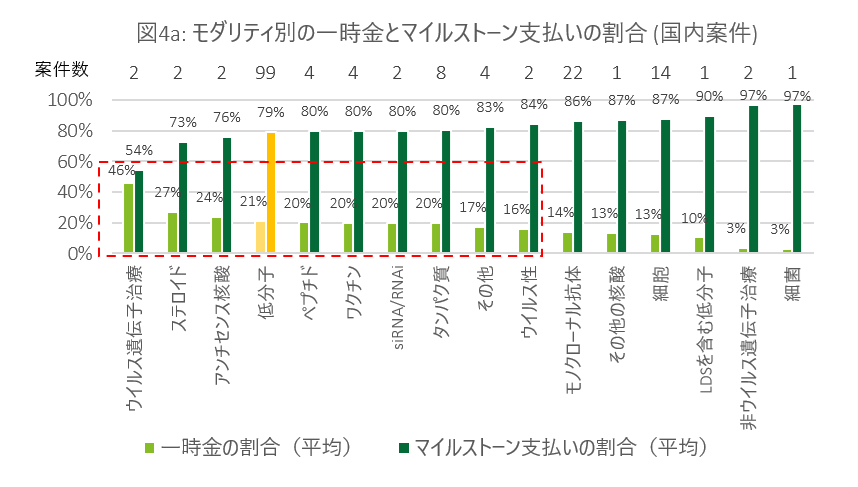 モダリティ別の一時金とマイルストーン支払いの割合