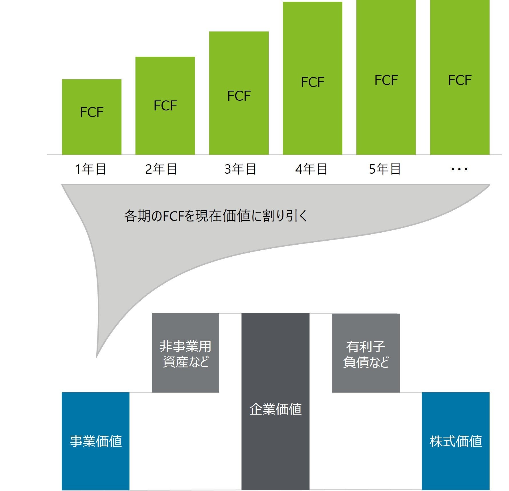 JVの事業計画をベースに、将来生み出されるキャッシュフローの現在価値を合計し、事業価値を算出し、算出した事業価値に、事業外資産や有利子負債などを勘案して、株式価値を導出する手法