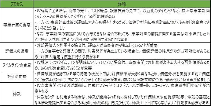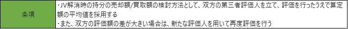 そのため、JV解消時を巡った価格交渉においては、「公正価値」の目線に関して合意形成した取引を行うことが潜在的に難しい構造であるといえます。