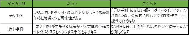 このような場合、売り手側は、見込んでいるアップサイドの見込みを反映した金額を将来獲得できる可能性があり、買い手側についても、売り手側が見込んでいるアップサイドに関する不確実性をヘッジする手段となり得ます。そのため、お互いの主張の歩み寄りが難しい局面に陥っている場合において、アーンアウト条項の設定により、デットロックが解消され、交渉が前に進むきっかけになる可能性があります。