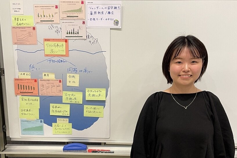 品川莉嘉:日本企業の経営戦略に興味があるのですが、日本だけでなく世界の賃金格差について考えてみたくて参加しました。男女の賃金格差には法律や教育の問題なども関わっていて、単に企業の努力で解決するものではなく根本的な意識改革が必要だとわかりました。