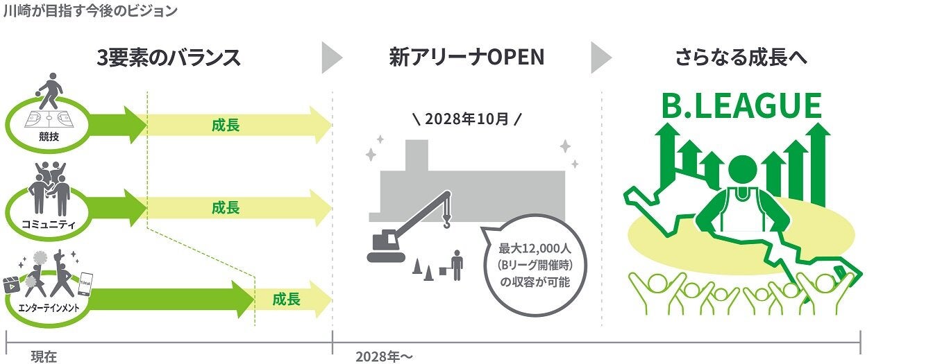 このように、クラブとしての理念や親会社のミッションをベースとした新アリーナ計画を通じて、川崎市という街とそこを拠点として活動するクラブが今後どのような発展を見せるのか、目が離せません。