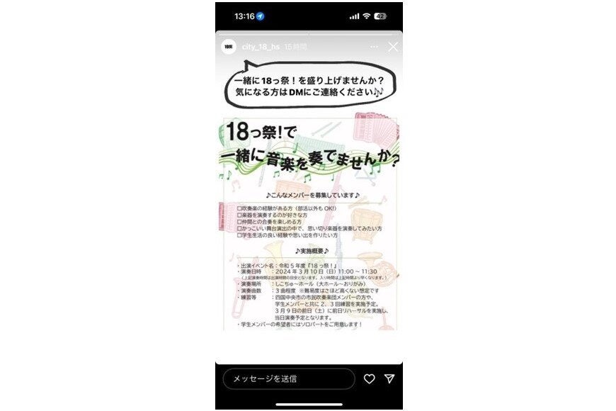 出所:18っ祭!公式Instagram(https://www.instagram.com/city_18_hs)ストーリー投稿