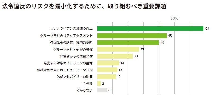 こちらは法令違反のリスクを最小化するために、取り組むべき重要課題について聞いたものです。