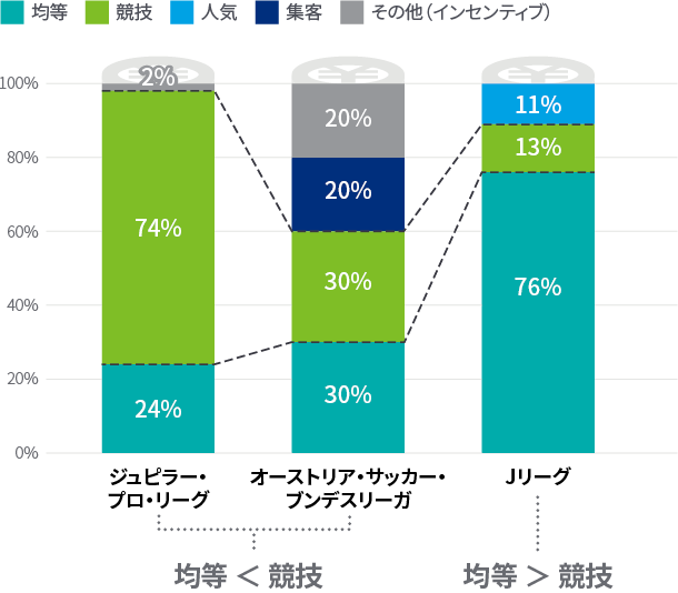 このように、リーグの分配金の制度はリーグが目指したい方向を実現するための強力なインセンティブとしての役割があり、各国のリーグの特徴が垣間見えるものとなっています。