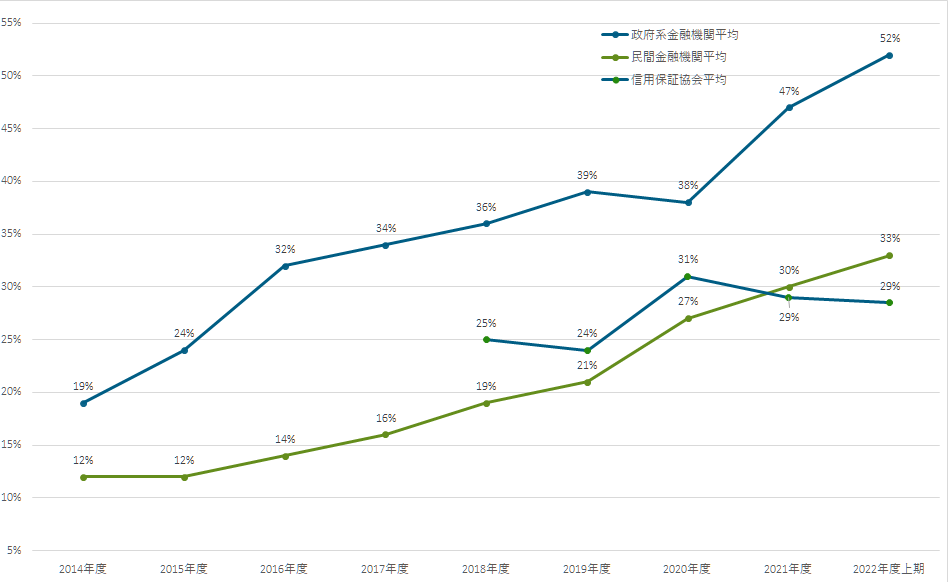 経営者による保証なしで融資した件数の割合