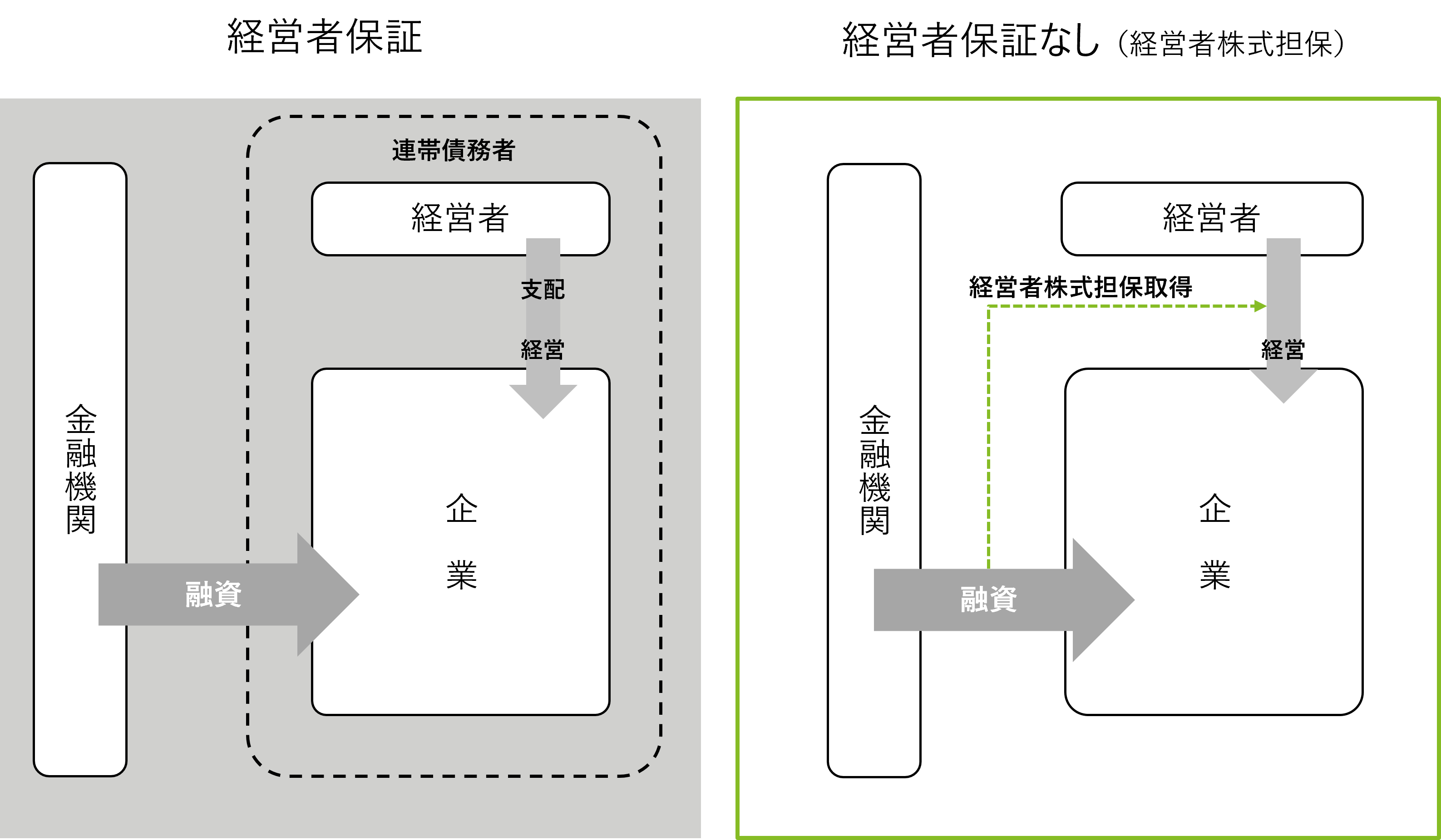 こうした動きを受け、これからは「経営者保証」ではなく、保全を必要とするならば「経営者株式担保」へ切り替えていくことが求められています。経営者保証をなくし、経営者が企業経営に専念できる環境を整えられるのです。