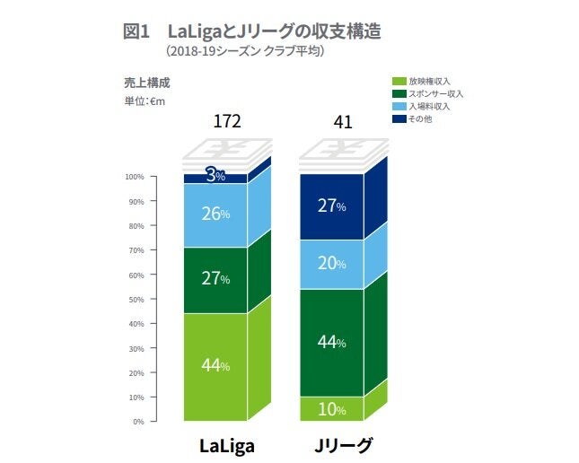 このようにLaLigaとJリーグでは、前提となる「試合」の価値に大きな差異がある事実は認めざるを得ません。LaLigaが多くの放映権収入を得るために実施している取り組みには、今後のJリーグに対する関心を高め、視聴者数や放映権料の増加につなげるためのヒントが隠されていると思われますが、Jリーグの生み出している価値の源泉をしっかり見極め、それをマネタイズしていく方法を、より一層検討していく必要がありそうです。