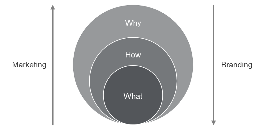 一般的に、マーケティングでは、What→How→Whyの順番で訴求します。例えば、店頭POPなどではまず差別化ポイントなどの商品特徴を大きく掲げます。「ノンアルコールなのに美味しい!」、これがWhatです。これをなぜ作り、どのように作るのか、というWhyやHowの部分を小さく書くか、そもそも書かない場合も多くあります。一方、ブランディングではWhyから始めます。