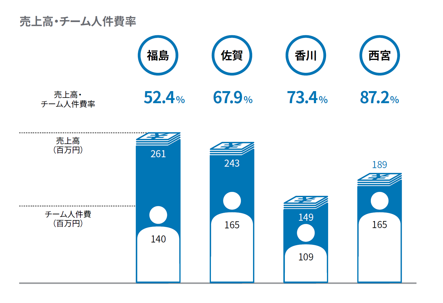 本KPIにおいて健全な水準の目安といわれる50%を超えるクラブは4クラブありますが、なかでも西宮(87.2%)、香川(73.4%)、佐賀(67.9%)の3クラブが60%を超えている状況です。