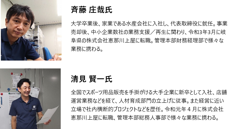 今回は株式会社恵那川上屋の斉藤庄哉氏と清見賢一氏にお話を伺いました。