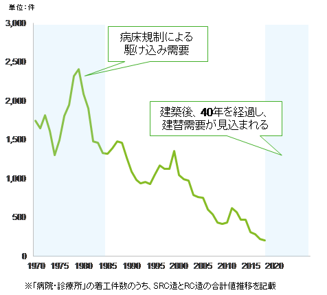 それから約40年が経過した現在、民間の中小病院を中心に建て替えが必要な病院が数多く存在しています。