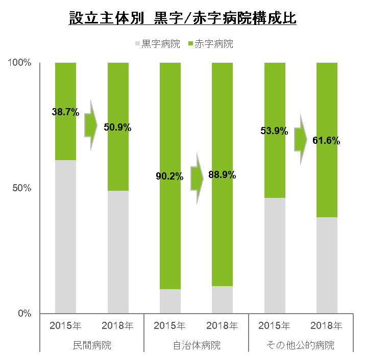 厚生労働省によると、民間病院の約半数、自治体病院は9割弱、そのほかの公的病院の約6割が赤字経営に陥っています。