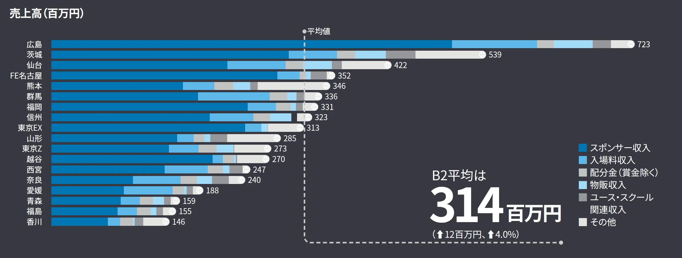 一方で、B2がビジネス面でB1に肉薄することがBリーグ全体の活性化につながるため、目が離せない指標でもあります。