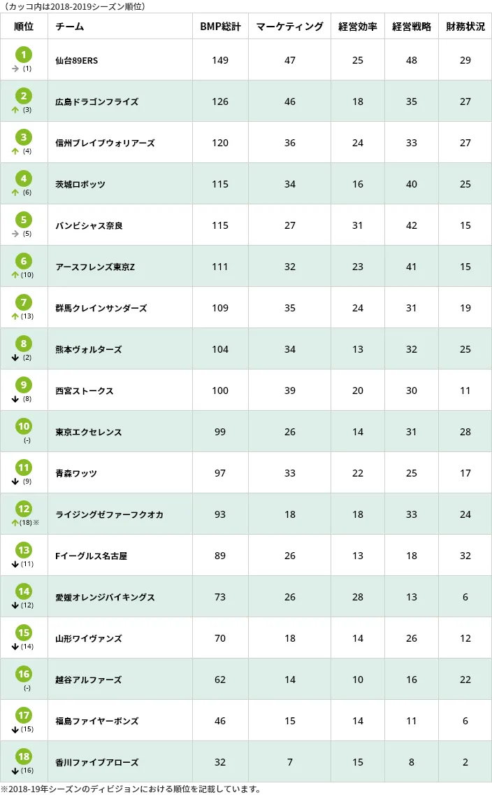 債務超過に陥りB2降格となった福岡は、2019年11月にB1千葉の元経営者であり、現Bリーグチェアマンの島田慎二氏をクラブ経営アドバイザリーに迎え入れ、再出発を目指しています。千葉での経営の経験を生かした地域に密着したクラブ経営により、財務体質の改善、経営陣・人員配置の最適化などの問題を1つずつ解決し、悪循環から抜け出し、ファンからの信頼を取り戻すことができるかがポイントになると考えられます。