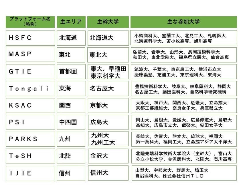 出典:科学技術振興機構報 第1663号:大学発新産業創出基金事業 スタートアップ・エコシステム共創プログラム 2023年度新規採択プラットフォームの決定について